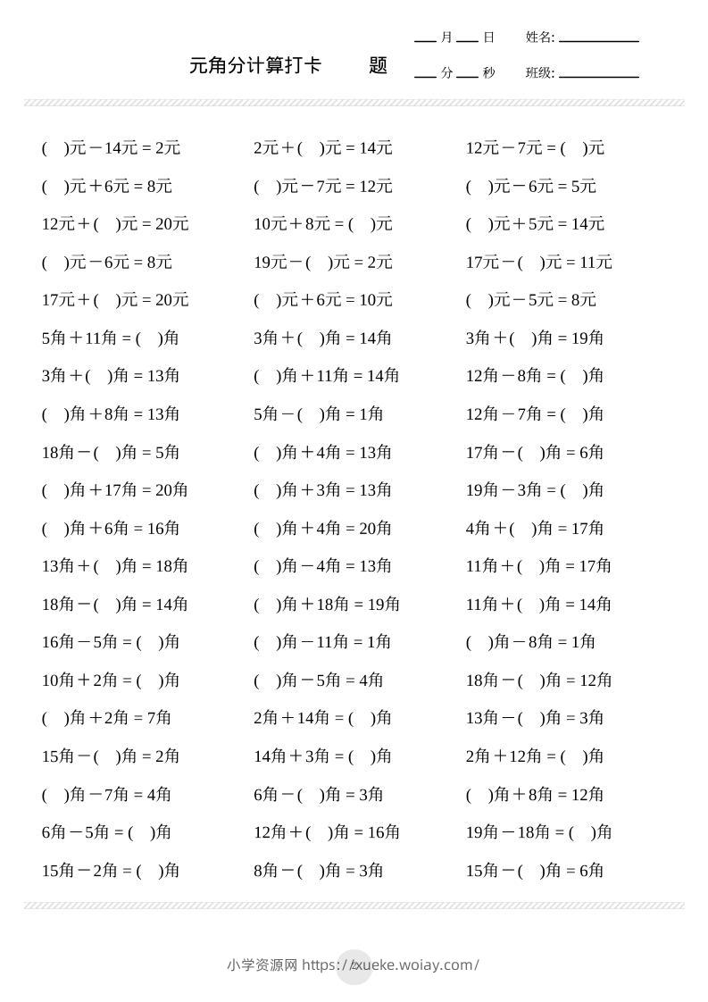 一上数学元角分计算专项练习1000题admin4个月前发布关注私信0279一上数学元角分计算专项练习1000题此内容为付费资源,请付费后查看¥10黄金会员免费钻石会员免费立即购买您当前未登录!建议登陆后购买,可保存购买订单格式pdf页数17 页大小1.69 MB付费资源 ——预览已结束,还剩15页未读——开通会员后可免费下载高清完整文档 © 版权声明文章版权归作者所有,未经允许请勿转载。THE END小学数学 喜欢就支持一下吧点赞9 分享QQ空间微博QQ好友海报分享复制链接收藏