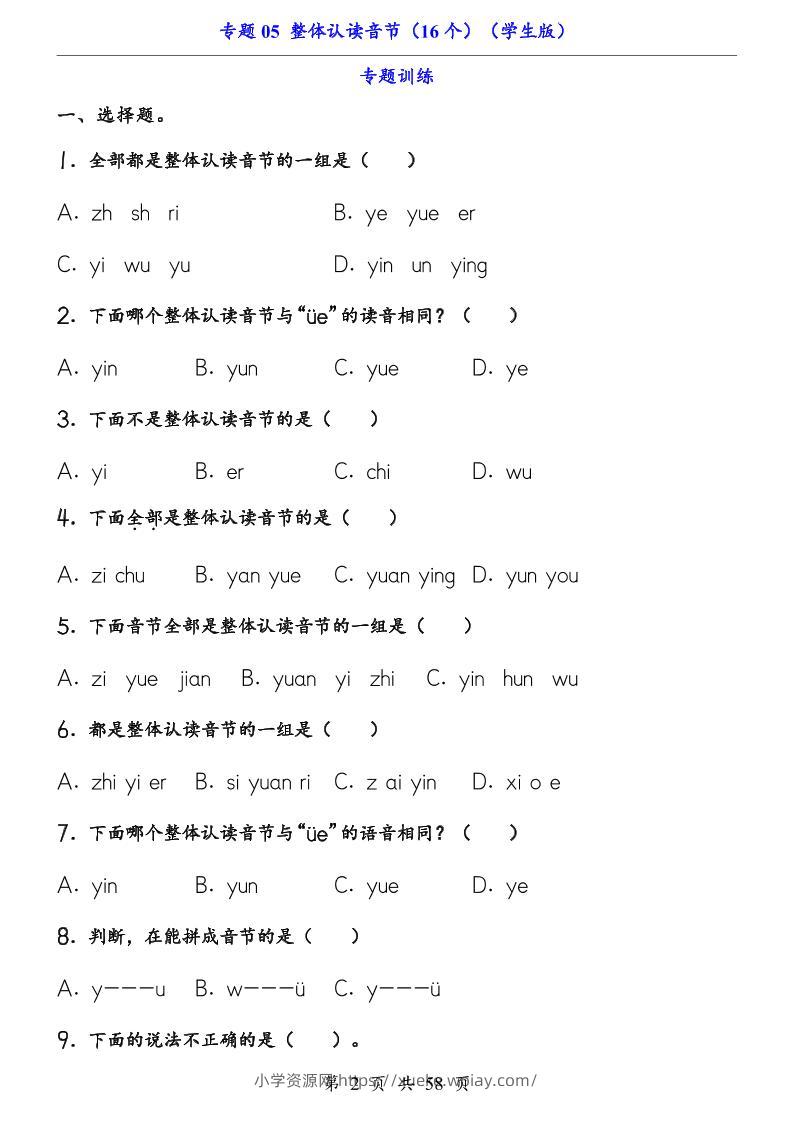 一上语文-专题05整体认读音节(16个)(知识+训练)admin4个月前发布关注私信0249一上语文-专题05整体认读音节(16个)(知识+训练)此内容为付费资源,请付费后查看¥10黄金会员免费钻石会员免费立即购买您当前未登录!建议登陆后购买,可保存购买订单格式pdf页数58 页大小1.47 MB付费资源 ——预览已结束,还剩56页未读——开通会员后可免费下载高清完整文档 © 版权声明文章版权归作者所有,未经允许请勿转载。THE END小学语文 喜欢就支持一下吧点赞9 分享QQ空间微博QQ好友海报分享复制链接收藏