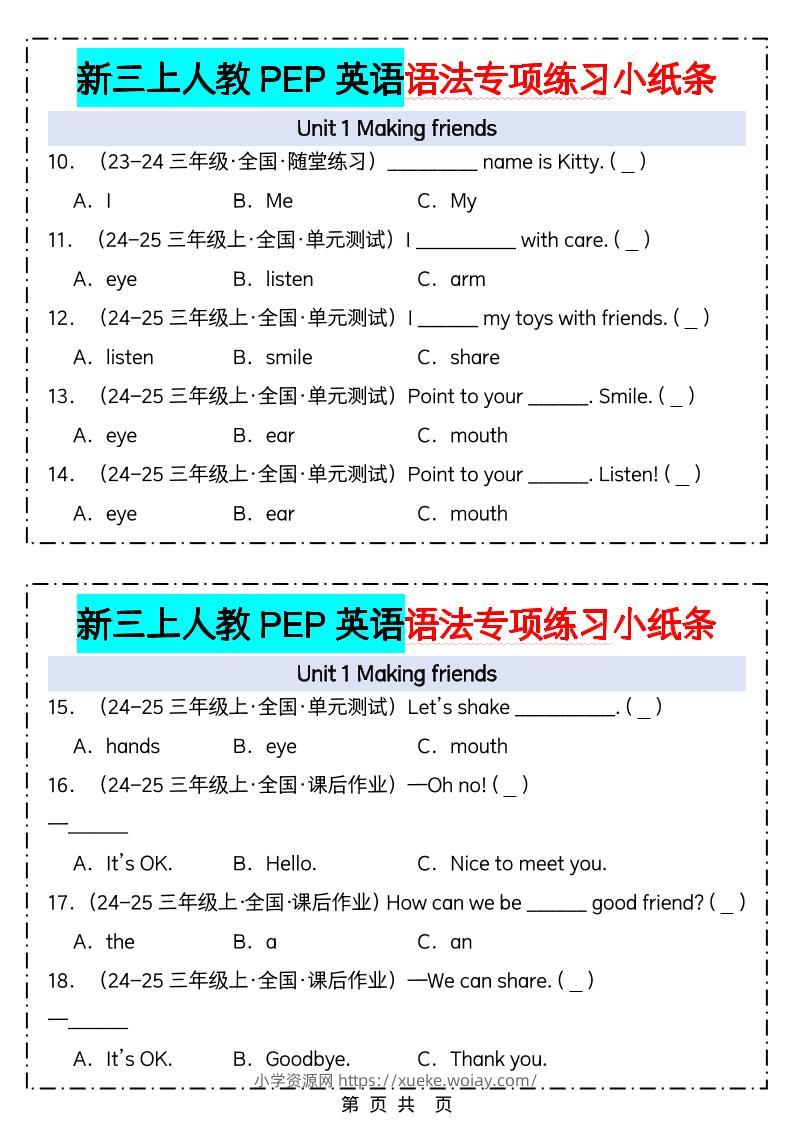 新三上人教PEP英语语法专项练习小纸条(含答案28页)admin3个月前发布关注私信0376新三上人教PEP英语语法专项练习小纸条(含答案28页)此内容为付费资源,请付费后查看¥10黄金会员免费钻石会员免费立即购买您当前未登录!建议登陆后购买,可保存购买订单格式pdf页数28 页大小793.30 KB付费资源 ——预览已结束,还剩26页未读——开通会员后可免费下载高清完整文档 © 版权声明文章版权归作者所有,未经允许请勿转载。THE END小学英语 喜欢就支持一下吧点赞6 分享QQ空间微博QQ好友海报分享复制链接收藏