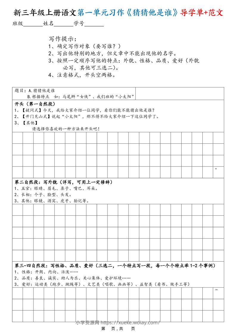 新三上语文1-8单元习作导学单(写作框架+范文)16页admin3个月前发布关注私信0207新三上语文1-8单元习作导学单(写作框架+范文)16页此内容为付费资源,请付费后查看¥10黄金会员免费钻石会员免费立即购买您当前未登录!建议登陆后购买,可保存购买订单格式pdf页数17 页大小1.24 MB付费资源 ——预览已结束,还剩15页未读——开通会员后可免费下载高清完整文档 © 版权声明文章版权归作者所有,未经允许请勿转载。THE END小学语文 喜欢就支持一下吧点赞7 分享QQ空间微博QQ好友海报分享复制链接收藏