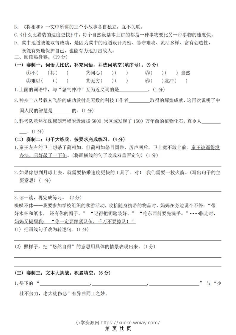 五年级上语文第二单元情景测试卷admin3个月前发布关注私信03113五年级上语文第二单元情景测试卷此内容为付费资源,请付费后查看¥10黄金会员免费钻石会员免费立即购买您当前未登录!建议登陆后购买,可保存购买订单格式pdf页数8 页大小3.17 MB付费资源 ——预览已结束,还剩6页未读——开通会员后可免费下载高清完整文档 © 版权声明文章版权归作者所有,未经允许请勿转载。THE END小学语文 喜欢就支持一下吧点赞13 分享QQ空间微博QQ好友海报分享复制链接收藏