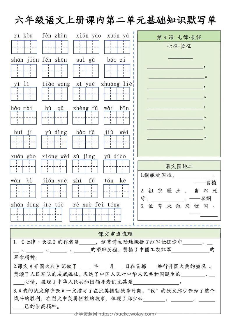 六上语文基础知识默写单(1-8单元)含答案16页admin3个月前发布关注私信03011六上语文基础知识默写单(1-8单元)含答案16页此内容为付费资源,请付费后查看¥10黄金会员免费钻石会员免费立即购买您当前未登录!建议登陆后购买,可保存购买订单格式pdf页数16 页大小7.69 MB付费资源 ——预览已结束,还剩14页未读——开通会员后可免费下载高清完整文档 © 版权声明文章版权归作者所有,未经允许请勿转载。THE END小学语文 喜欢就支持一下吧点赞11 分享QQ空间微博QQ好友海报分享复制链接收藏