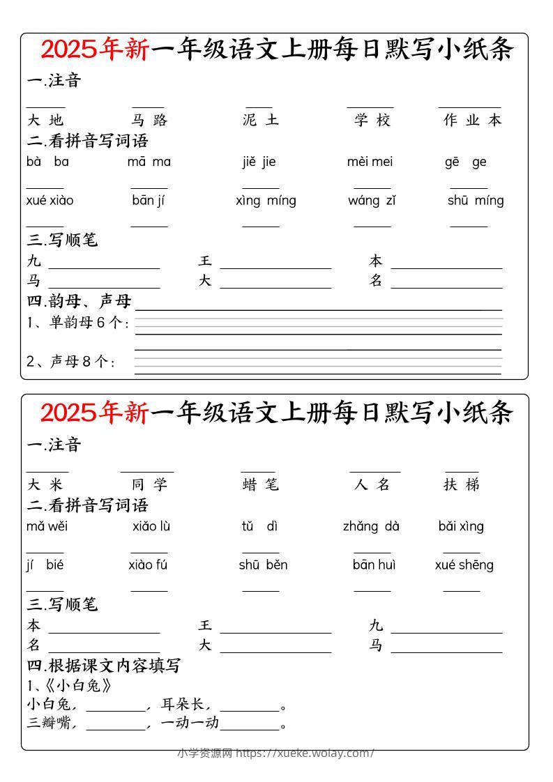 一年级上语文空白每日默写小纸条admin2个月前发布关注私信0429一年级上语文空白每日默写小纸条此内容为付费资源,请付费后查看¥10黄金会员免费钻石会员免费立即购买您当前未登录!建议登陆后购买,可保存购买订单格式pdf页数8 页大小418.10 KB付费资源 ——预览已结束,还剩6页未读——开通会员后可免费下载高清完整文档 © 版权声明文章版权归作者所有,未经允许请勿转载。THE END小学语文 喜欢就支持一下吧点赞9 分享QQ空间微博QQ好友海报分享复制链接收藏