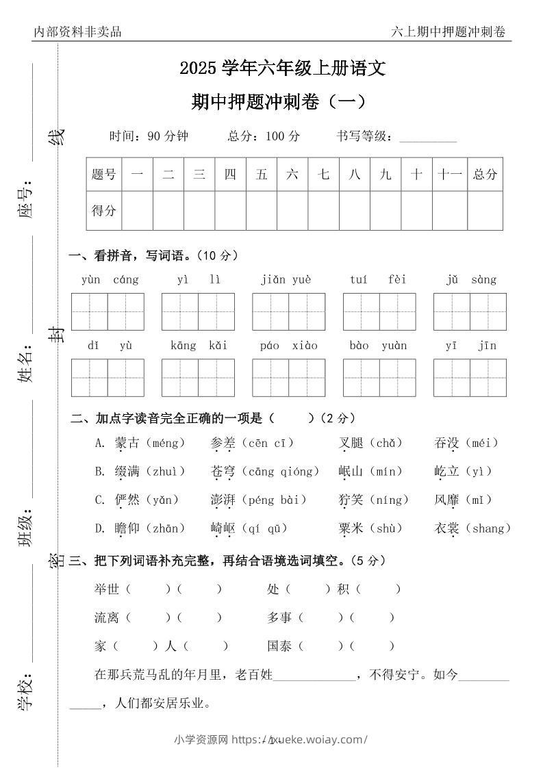 六上语文期中押题冲刺卷5套(含答案39页)admin2个月前发布关注私信04115六上语文期中押题冲刺卷5套(含答案39页)此内容为付费资源,请付费后查看¥10黄金会员免费钻石会员免费立即购买您当前未登录!建议登陆后购买,可保存购买订单格式pdf页数39 页大小961.98 KB付费资源 ——预览已结束,还剩37页未读——开通会员后可免费下载高清完整文档 © 版权声明文章版权归作者所有,未经允许请勿转载。THE END小学语文 喜欢就支持一下吧点赞15 分享QQ空间微博QQ好友海报分享复制链接收藏