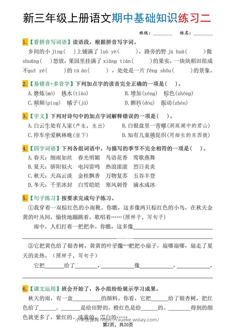 新三上语文期中基础知识练习10套(含答案20页)admin2个月前发布关注私信04712新三上语文期中基础知识练习10套(含答案20页)此内容为付费资源,请付费后查看¥10黄金会员免费钻石会员免费立即购买您当前未登录!建议登陆后购买,可保存购买订单格式pdf页数20 页大小10.19 MB付费资源 ——预览已结束,还剩18页未读——开通会员后可免费下载高清完整文档 © 版权声明文章版权归作者所有,未经允许请勿转载。THE END小学语文 喜欢就支持一下吧点赞12 分享QQ空间微博QQ好友海报分享复制链接收藏