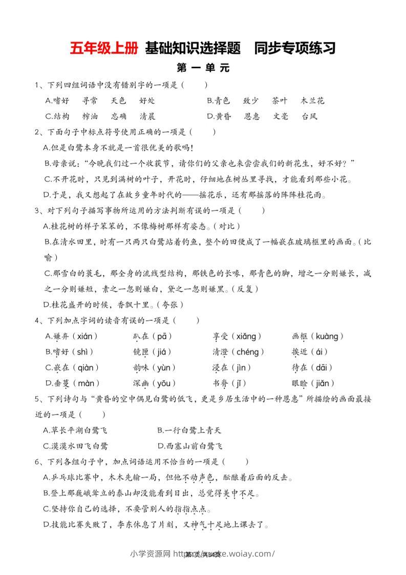 五上语文期中1-4单元选择题专项训练(空白)admin2个月前发布关注私信0249五上语文期中1-4单元选择题专项训练(空白)此内容为付费资源,请付费后查看¥10黄金会员免费钻石会员免费立即购买您当前未登录!建议登陆后购买,可保存购买订单格式pdf页数35 页大小12.22 MB付费资源 ——预览已结束,还剩33页未读——开通会员后可免费下载高清完整文档 © 版权声明文章版权归作者所有,未经允许请勿转载。THE END小学语文 喜欢就支持一下吧点赞9 分享QQ空间微博QQ好友海报分享复制链接收藏