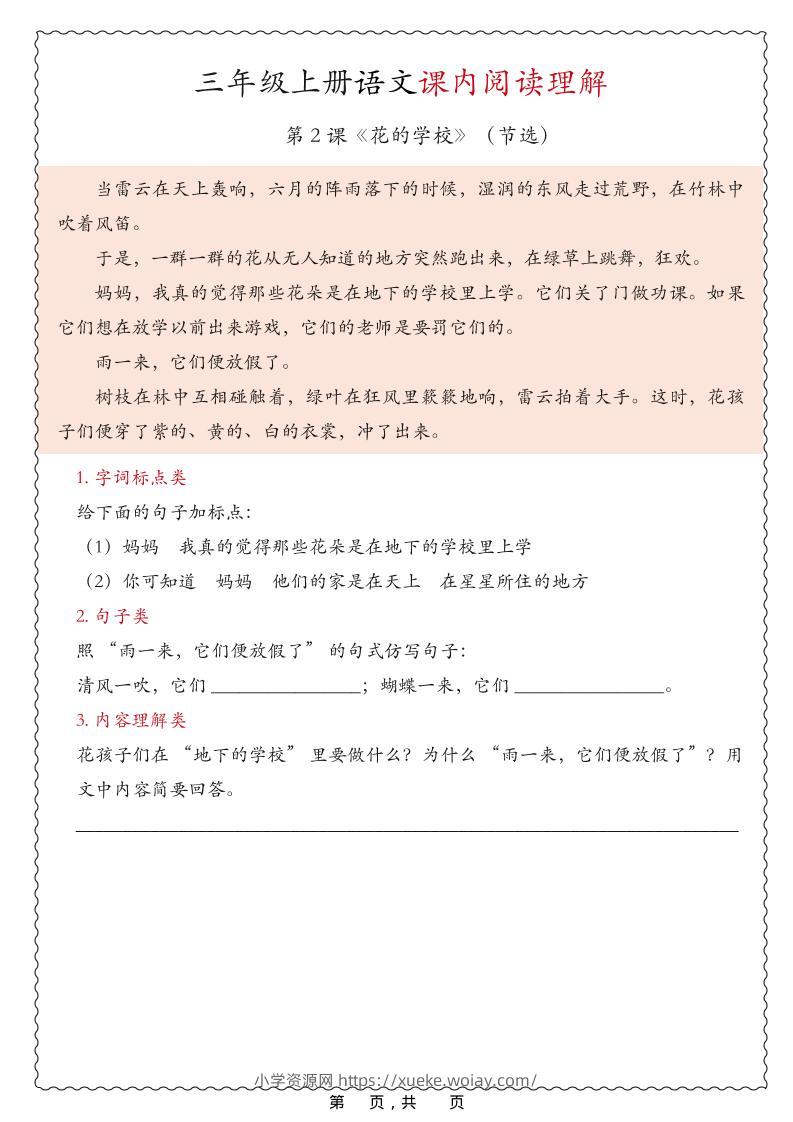 25新三上语文期中课内阅读理解专项(含答案16页)admin2个月前发布关注私信0301025新三上语文期中课内阅读理解专项(含答案16页)此内容为付费资源,请付费后查看¥10黄金会员免费钻石会员免费立即购买您当前未登录!建议登陆后购买,可保存购买订单格式pdf页数16 页大小871.92 KB付费资源 ——预览已结束,还剩14页未读——开通会员后可免费下载高清完整文档 © 版权声明文章版权归作者所有,未经允许请勿转载。THE END小学语文 喜欢就支持一下吧点赞10 分享QQ空间微博QQ好友海报分享复制链接收藏