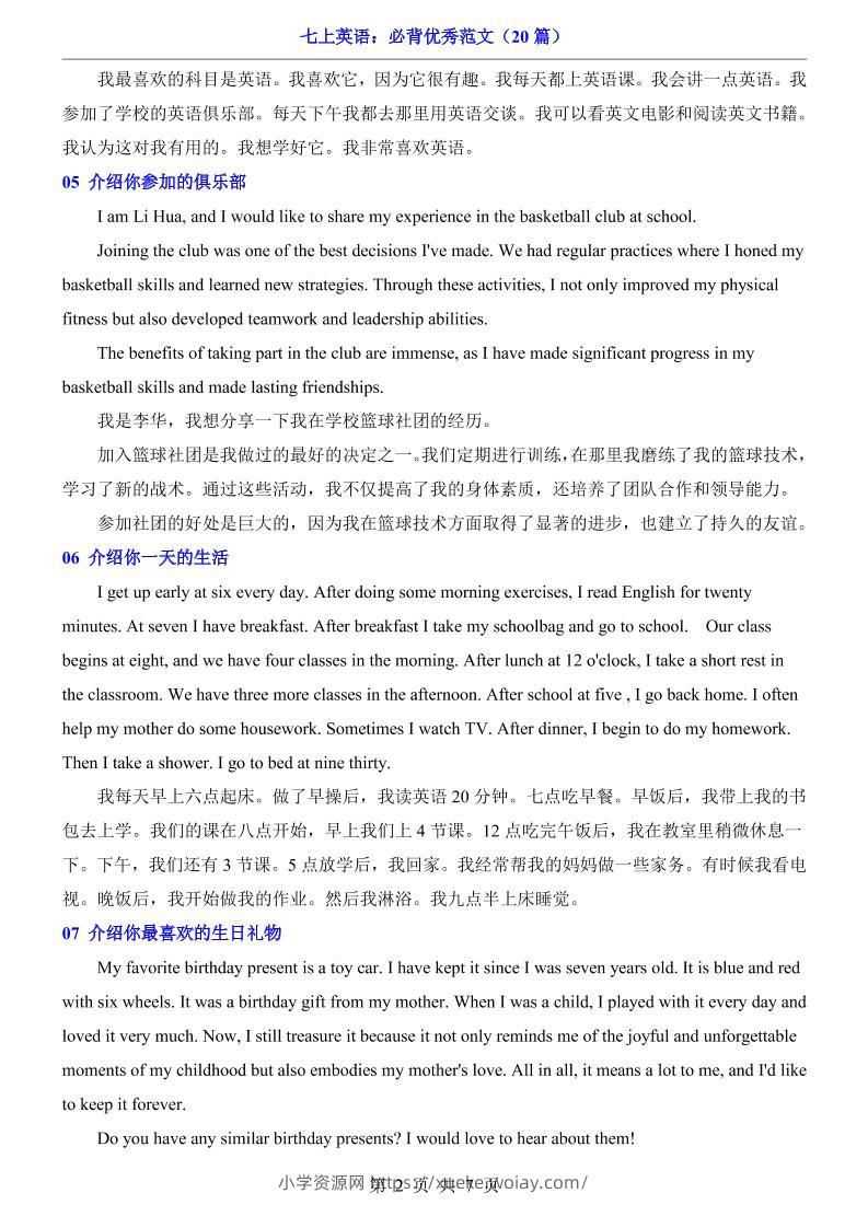 七年级上英语必背优秀范文(20篇)admin2个月前发布关注私信02210七年级上英语必背优秀范文(20篇)此内容为付费资源,请付费后查看¥10黄金会员免费钻石会员免费立即购买您当前未登录!建议登陆后购买,可保存购买订单格式pdf页数7 页大小208.74 KB付费资源 ——预览已结束,还剩5页未读——开通会员后可免费下载高清完整文档 © 版权声明文章版权归作者所有,未经允许请勿转载。THE END初中英语 喜欢就支持一下吧点赞10 分享QQ空间微博QQ好友海报分享复制链接收藏