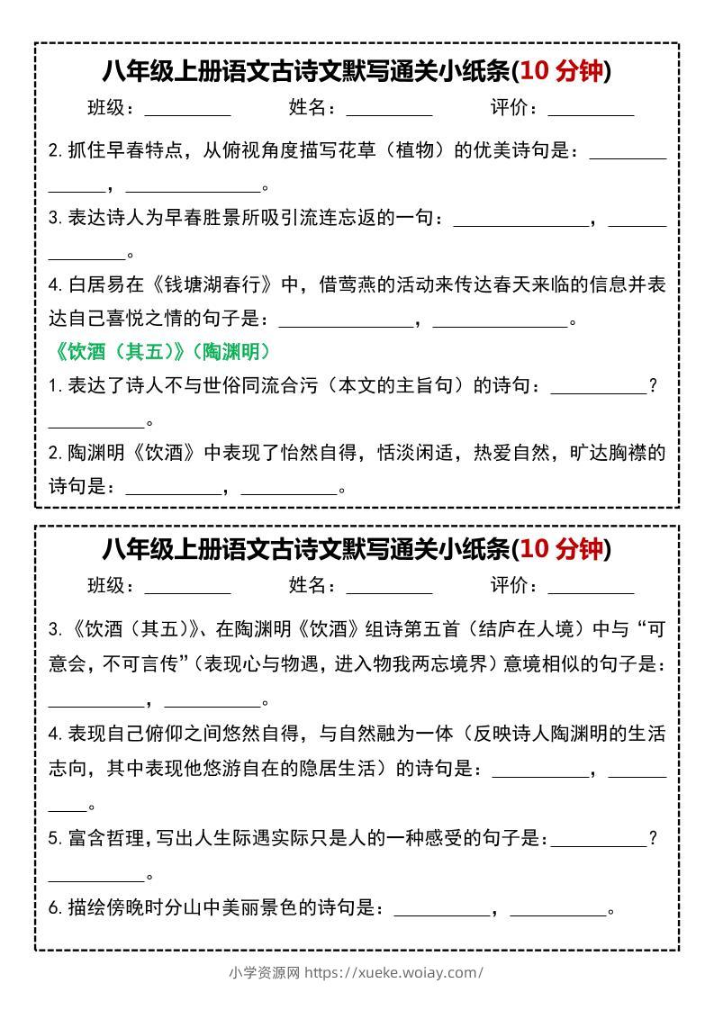 八年级上语文古诗文默写通关小纸条(10分钟)admin2个月前发布关注私信0208八年级上语文古诗文默写通关小纸条(10分钟)此内容为付费资源,请付费后查看¥10黄金会员免费钻石会员免费立即购买您当前未登录!建议登陆后购买,可保存购买订单格式pdf页数18 页大小3.75 MB付费资源 ——预览已结束,还剩14页未读——开通会员后可免费下载高清完整文档 © 版权声明文章版权归作者所有,未经允许请勿转载。THE END初中语文 喜欢就支持一下吧点赞8 分享QQ空间微博QQ好友海报分享复制链接收藏