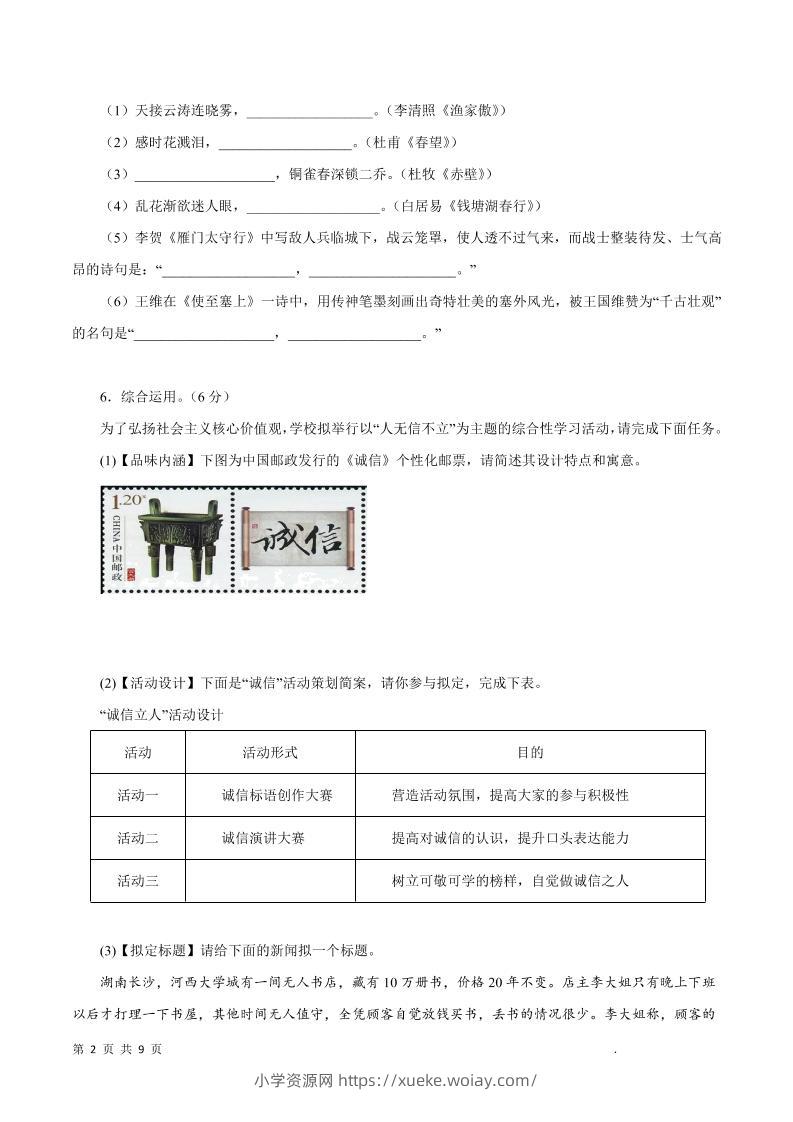 八年级上语文期末模拟试题1admin2个月前发布关注私信04214八年级上语文期末模拟试题1此内容为付费资源,请付费后查看¥10黄金会员免费钻石会员免费立即购买您当前未登录!建议登陆后购买,可保存购买订单格式pdf页数26 页大小1.30 MB付费资源 ——预览已结束,还剩24页未读——开通会员后可免费下载高清完整文档 © 版权声明文章版权归作者所有,未经允许请勿转载。THE END初中语文 喜欢就支持一下吧点赞14 分享QQ空间微博QQ好友海报分享复制链接收藏
