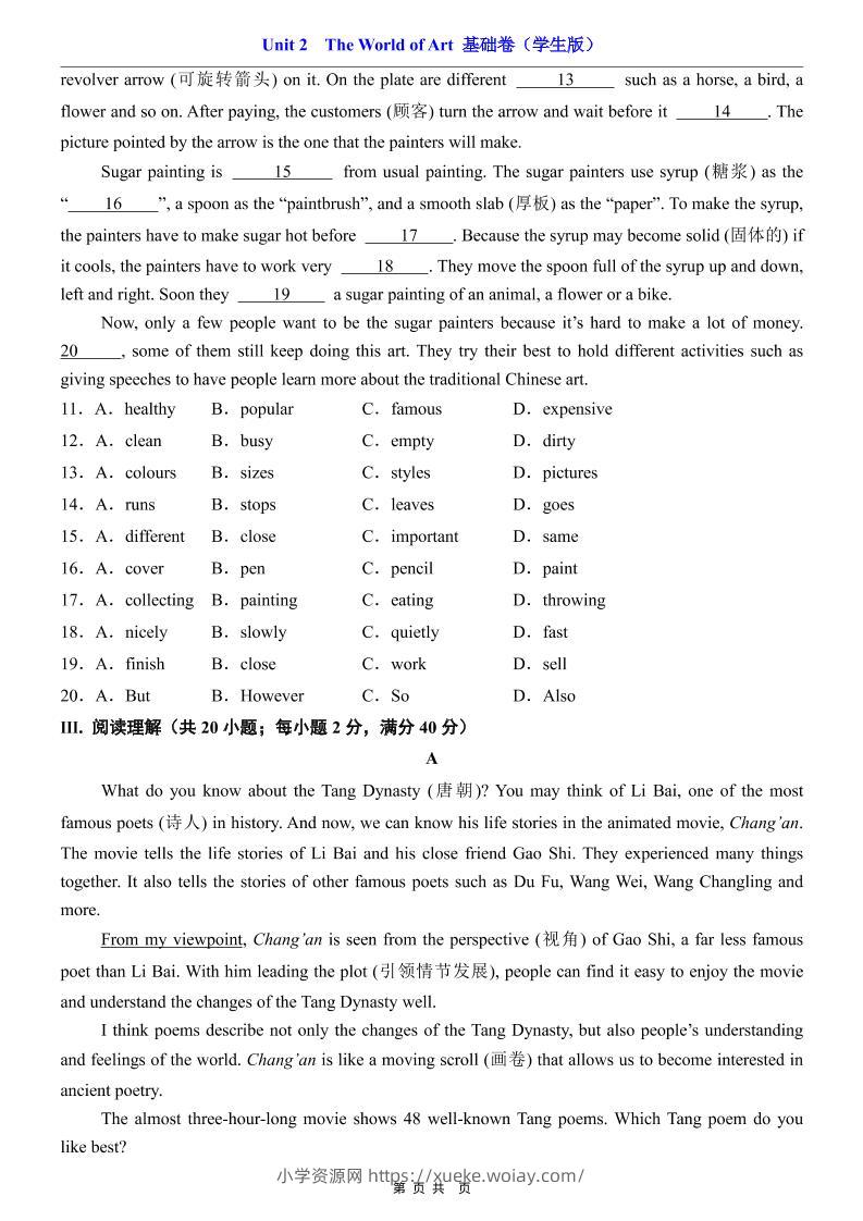 八年级上英语Unit2基础卷(仁爱版)admin2个月前发布关注私信0348八年级上英语Unit2基础卷(仁爱版)此内容为付费资源,请付费后查看¥10黄金会员免费钻石会员免费立即购买您当前未登录!建议登陆后购买,可保存购买订单格式pdf页数20 页大小1.02 MB付费资源 ——预览已结束,还剩18页未读——开通会员后可免费下载高清完整文档 © 版权声明文章版权归作者所有,未经允许请勿转载。THE END初中英语 喜欢就支持一下吧点赞8 分享QQ空间微博QQ好友海报分享复制链接收藏