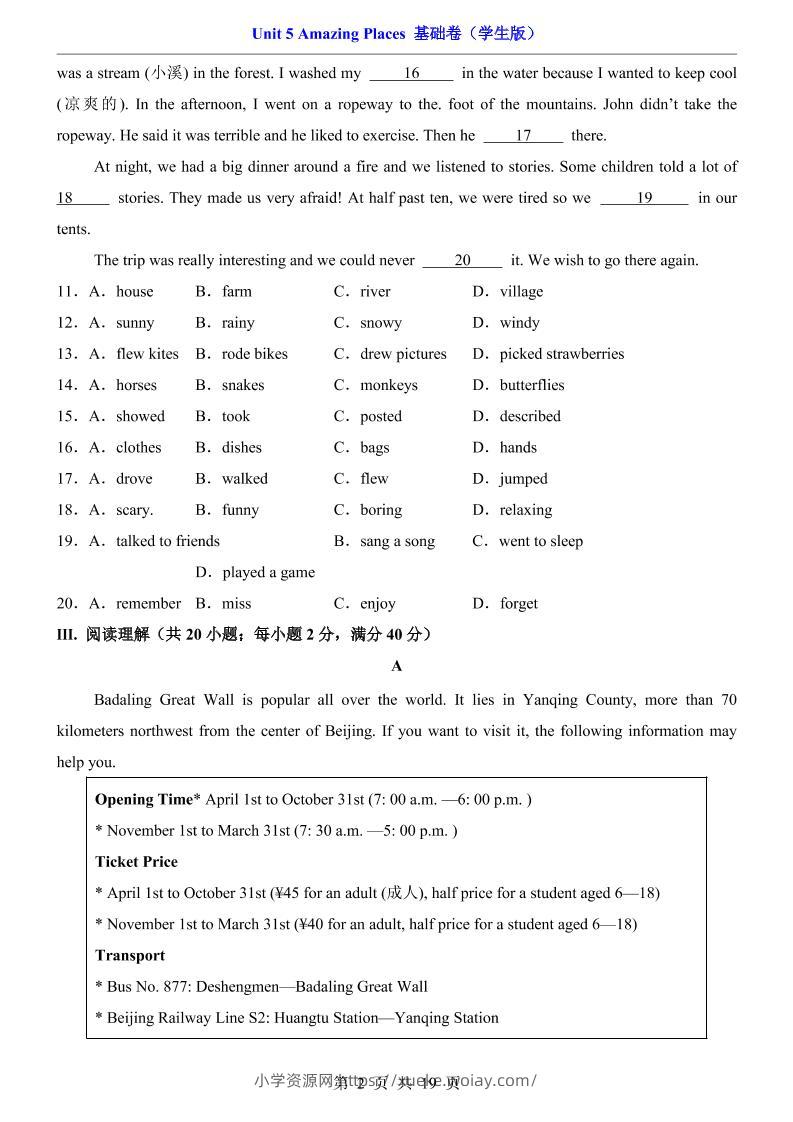 八年级上英语Unit5基础卷(仁爱版)admin2个月前发布关注私信0265八年级上英语Unit5基础卷(仁爱版)此内容为付费资源,请付费后查看¥10黄金会员免费钻石会员免费立即购买您当前未登录!建议登陆后购买,可保存购买订单格式pdf页数19 页大小779.83 KB付费资源 ——预览已结束,还剩17页未读——开通会员后可免费下载高清完整文档 © 版权声明文章版权归作者所有,未经允许请勿转载。THE END初中英语 喜欢就支持一下吧点赞5 分享QQ空间微博QQ好友海报分享复制链接收藏