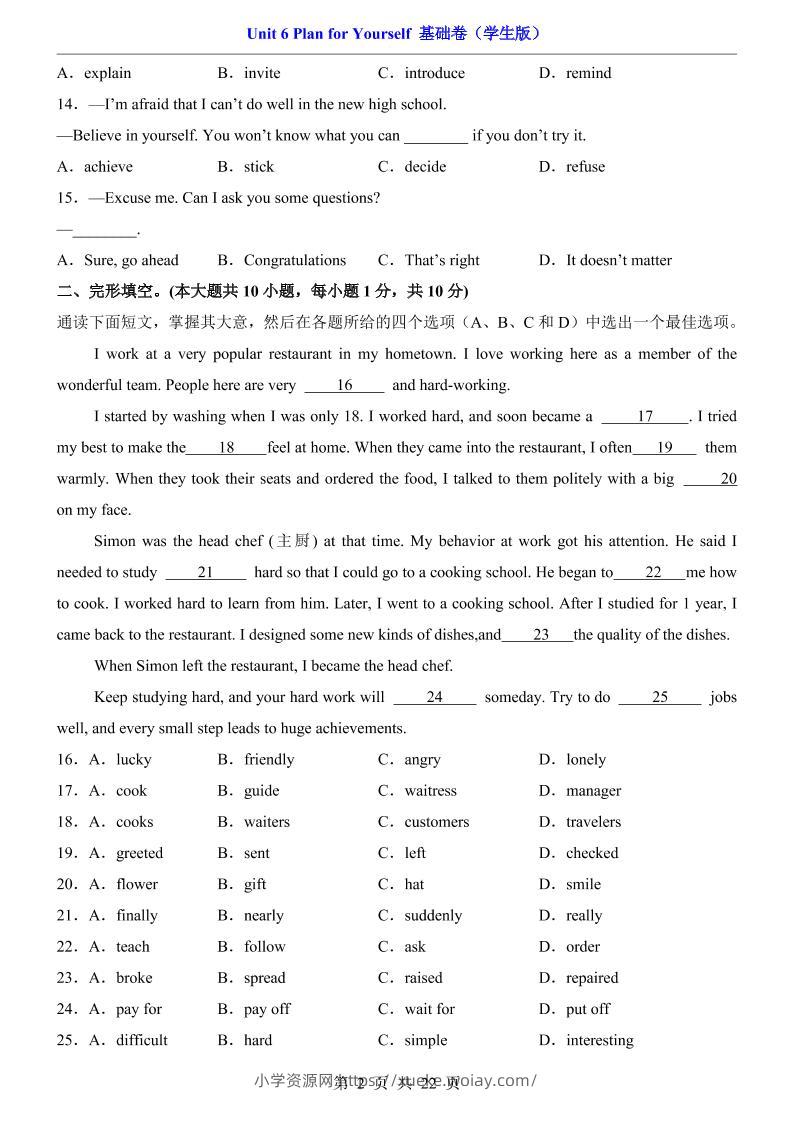 八年级上英语Unit6基础卷(人教版)admin2个月前发布关注私信02212八年级上英语Unit6基础卷(人教版)此内容为付费资源,请付费后查看¥10黄金会员免费钻石会员免费立即购买您当前未登录!建议登陆后购买,可保存购买订单格式pdf页数22 页大小861.40 KB付费资源 ——预览已结束,还剩20页未读——开通会员后可免费下载高清完整文档 © 版权声明文章版权归作者所有,未经允许请勿转载。THE END初中英语 喜欢就支持一下吧点赞12 分享QQ空间微博QQ好友海报分享复制链接收藏