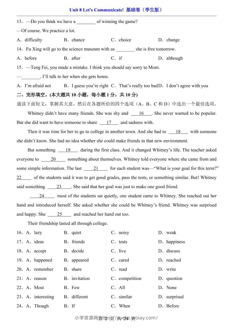 八年级上英语Unit8基础卷(人教版)admin2个月前发布关注私信0285八年级上英语Unit8基础卷(人教版)此内容为付费资源,请付费后查看¥10黄金会员免费钻石会员免费立即购买您当前未登录!建议登陆后购买,可保存购买订单格式pdf页数24 页大小919.15 KB付费资源 ——预览已结束,还剩22页未读——开通会员后可免费下载高清完整文档 © 版权声明文章版权归作者所有,未经允许请勿转载。THE END初中英语 喜欢就支持一下吧点赞5 分享QQ空间微博QQ好友海报分享复制链接收藏