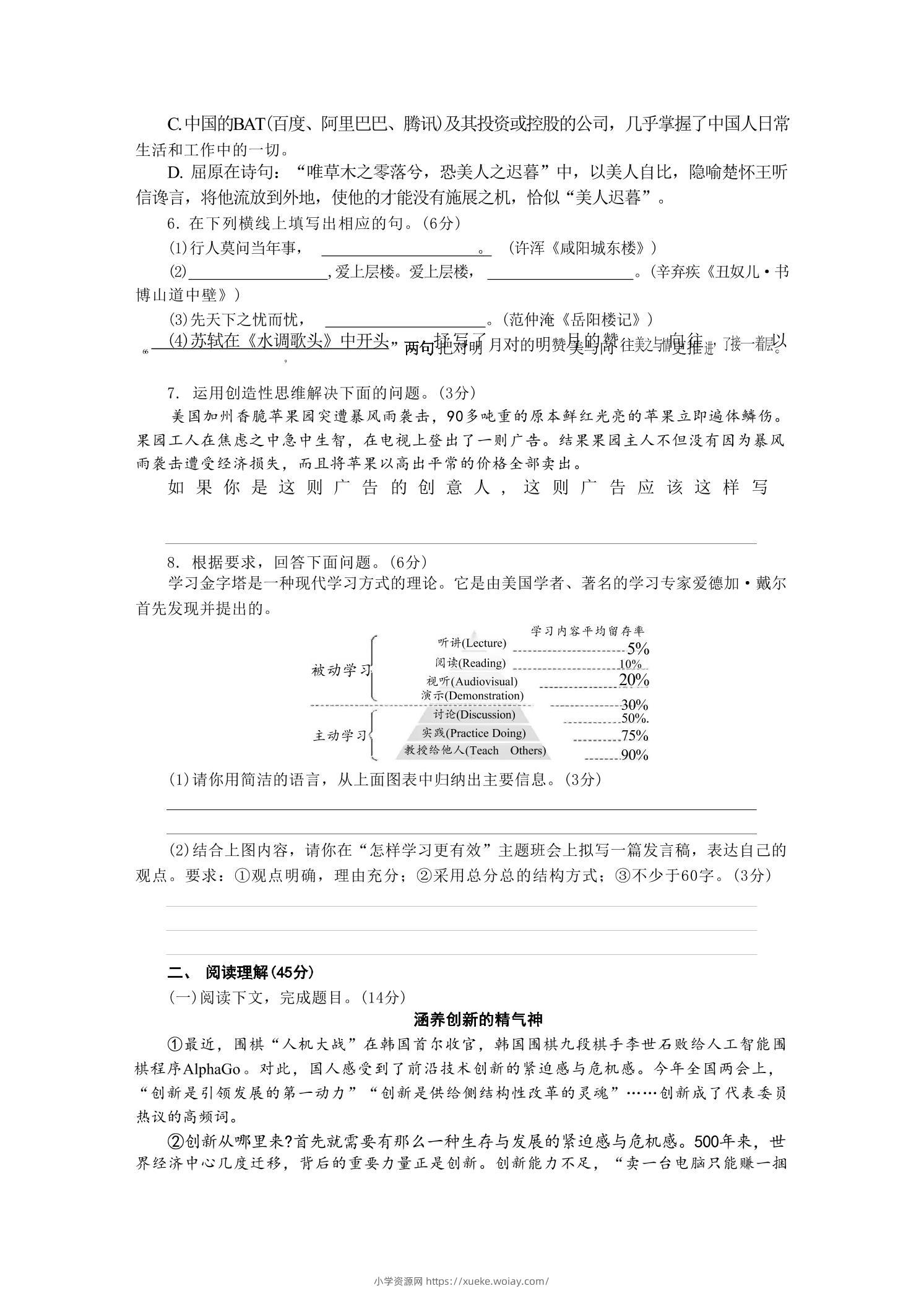 九年级上语文第五单元检测卷admin1个月前发布关注私信0295九年级上语文第五单元检测卷此内容为付费资源,请付费后查看¥10黄金会员免费钻石会员免费立即购买您当前未登录!建议登陆后购买,可保存购买订单格式pdf页数9 页大小512.42 KB付费资源 ——预览已结束,还剩7页未读——开通会员后可免费下载高清完整文档 © 版权声明文章版权归作者所有,未经允许请勿转载。THE END初中语文 喜欢就支持一下吧点赞5 分享QQ空间微博QQ好友海报分享复制链接收藏