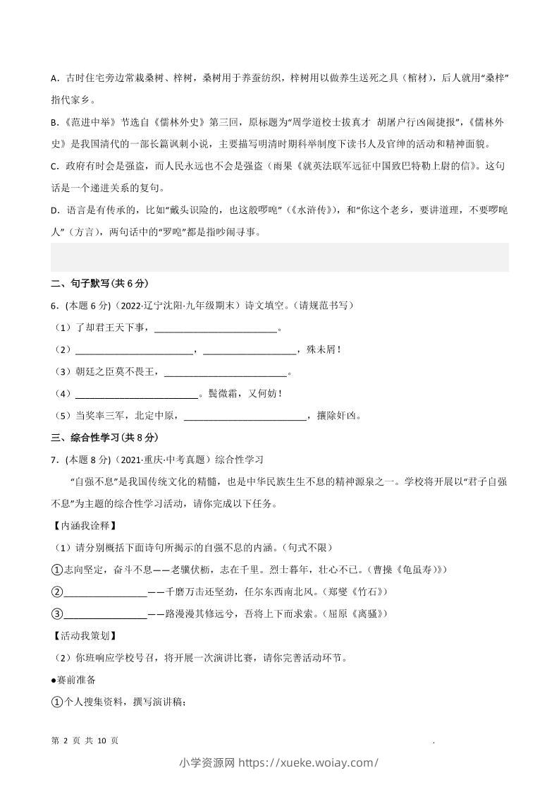 九年级上语文期末突破卷5admin1个月前发布关注私信0218九年级上语文期末突破卷5此内容为付费资源,请付费后查看¥10黄金会员免费钻石会员免费立即购买您当前未登录!建议登陆后购买,可保存购买订单格式pdf页数28 页大小1.24 MB付费资源 ——预览已结束,还剩26页未读——开通会员后可免费下载高清完整文档 © 版权声明文章版权归作者所有,未经允许请勿转载。THE END初中语文 喜欢就支持一下吧点赞8 分享QQ空间微博QQ好友海报分享复制链接收藏