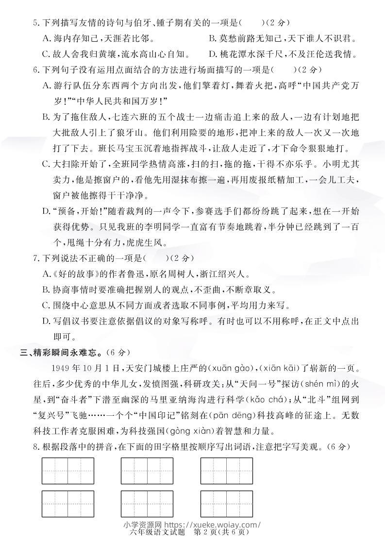 【语文】六上语文期末绝密真题卷1admin1个月前发布关注私信04912【语文】六上语文期末绝密真题卷1此内容为付费资源,请付费后查看¥10黄金会员免费钻石会员免费立即购买您当前未登录!建议登陆后购买,可保存购买订单格式pdf页数8 页大小1.61 MB付费资源 ——预览已结束,还剩6页未读——开通会员后可免费下载高清完整文档 © 版权声明文章版权归作者所有,未经允许请勿转载。THE END小学语文 喜欢就支持一下吧点赞12 分享QQ空间微博QQ好友海报分享复制链接收藏