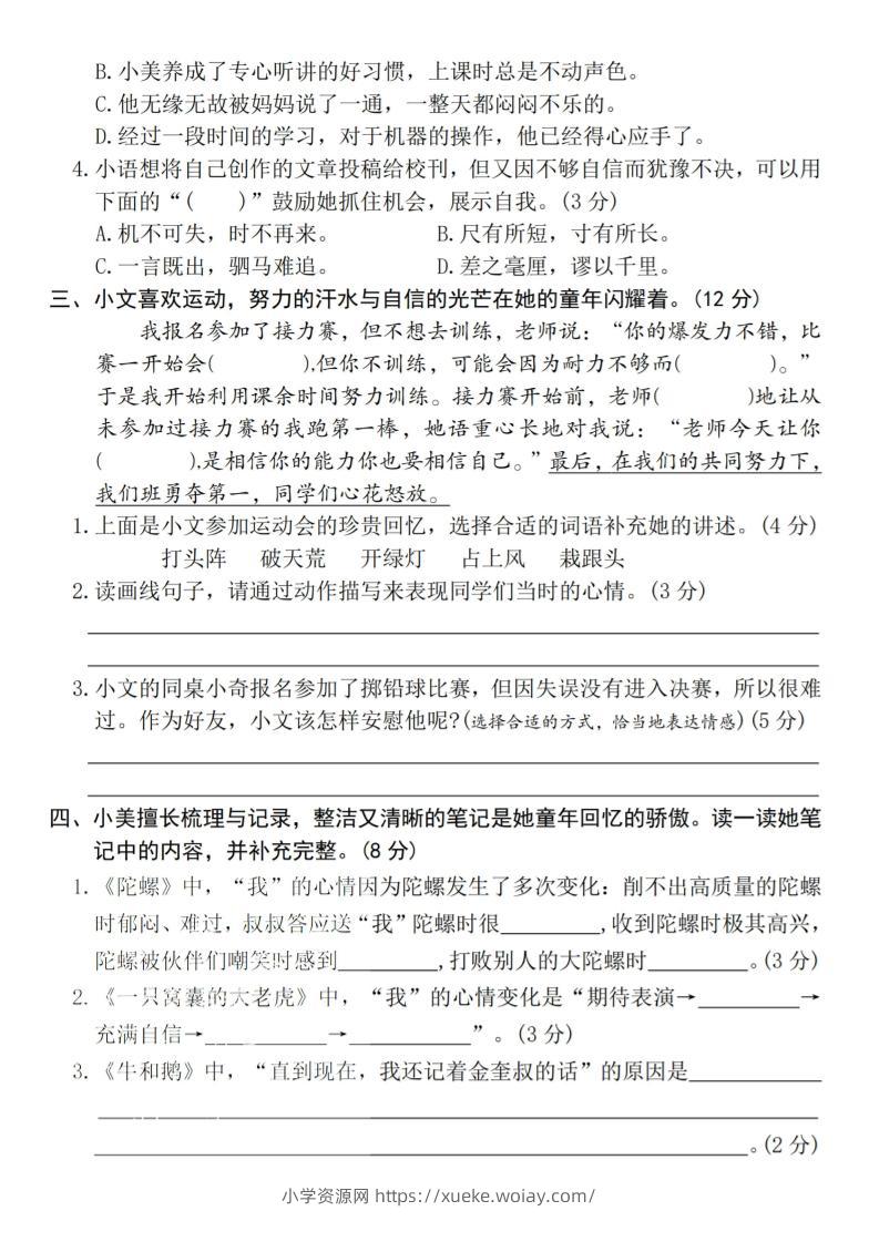 四年级上语文第六单元测试卷4admin1个月前发布关注私信03014四年级上语文第六单元测试卷4此内容为付费资源,请付费后查看¥10黄金会员免费钻石会员免费立即购买您当前未登录!建议登陆后购买,可保存购买订单格式pdf页数4 页大小1.97 MB付费资源 ——预览已结束,还剩2页未读——开通会员后可免费下载高清完整文档 © 版权声明文章版权归作者所有,未经允许请勿转载。THE END小学语文 喜欢就支持一下吧点赞14 分享QQ空间微博QQ好友海报分享复制链接收藏