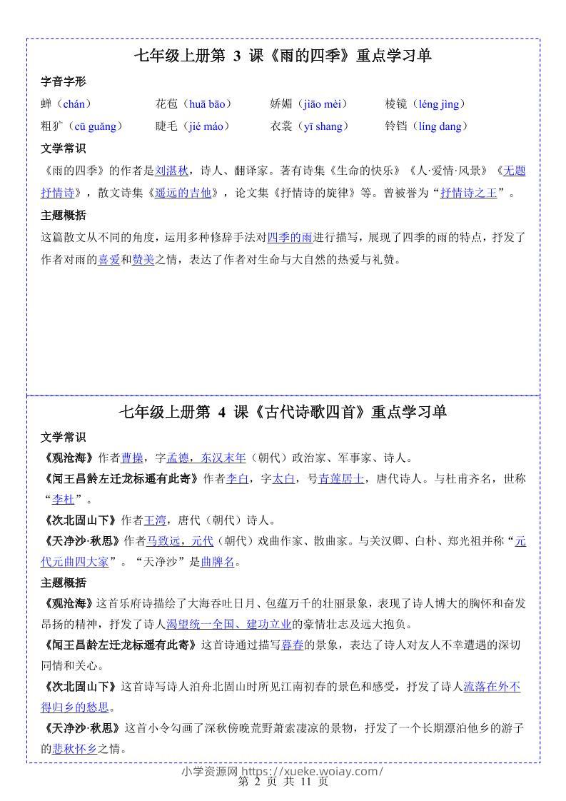 七年级上语文重点学习单admin1个月前发布关注私信02711七年级上语文重点学习单此内容为付费资源,请付费后查看¥10黄金会员免费钻石会员免费立即购买您当前未登录!建议登陆后购买,可保存购买订单格式pdf页数11 页大小806.66 KB付费资源 ——预览已结束,还剩9页未读——开通会员后可免费下载高清完整文档 © 版权声明文章版权归作者所有,未经允许请勿转载。THE END初中语文 喜欢就支持一下吧点赞11 分享QQ空间微博QQ好友海报分享复制链接收藏