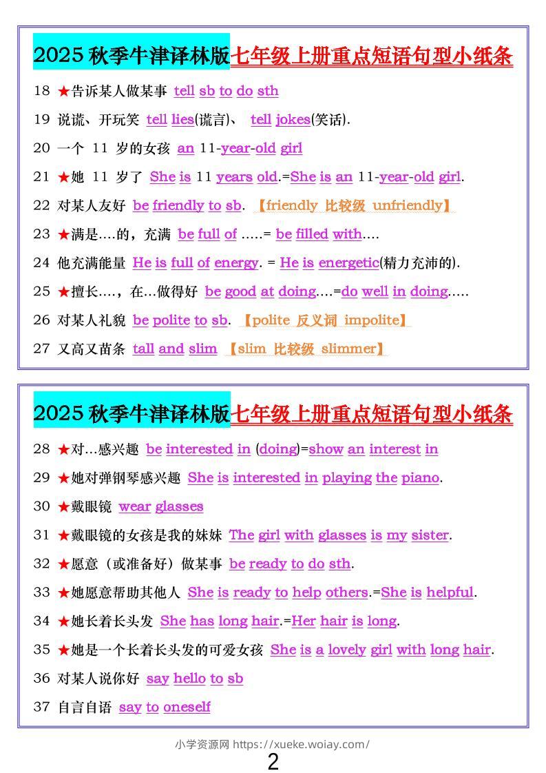 七年级上英语重点短语句型小纸条(牛津译林版)admin28天前发布关注私信04610七年级上英语重点短语句型小纸条(牛津译林版)此内容为付费资源,请付费后查看¥10黄金会员免费钻石会员免费立即购买您当前未登录!建议登陆后购买,可保存购买订单格式pdf页数32 页大小1.37 MB付费资源 ——预览已结束,还剩30页未读——开通会员后可免费下载高清完整文档 © 版权声明文章版权归作者所有,未经允许请勿转载。THE END初中英语 喜欢就支持一下吧点赞10 分享QQ空间微博QQ好友海报分享复制链接收藏