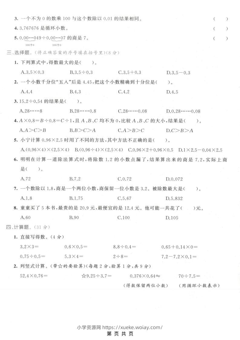 五年级上数学小数乘除法专项测试卷《人教版》admin20天前发布关注私信0265五年级上数学小数乘除法专项测试卷《人教版》此内容为付费资源,请付费后查看¥10黄金会员免费钻石会员免费立即购买您当前未登录!建议登陆后购买,可保存购买订单格式pdf页数5 页大小5.94 MB付费资源 ——预览已结束,还剩3页未读——开通会员后可免费下载高清完整文档 © 版权声明文章版权归作者所有,未经允许请勿转载。THE END小学数学 喜欢就支持一下吧点赞5 分享QQ空间微博QQ好友海报分享复制链接收藏