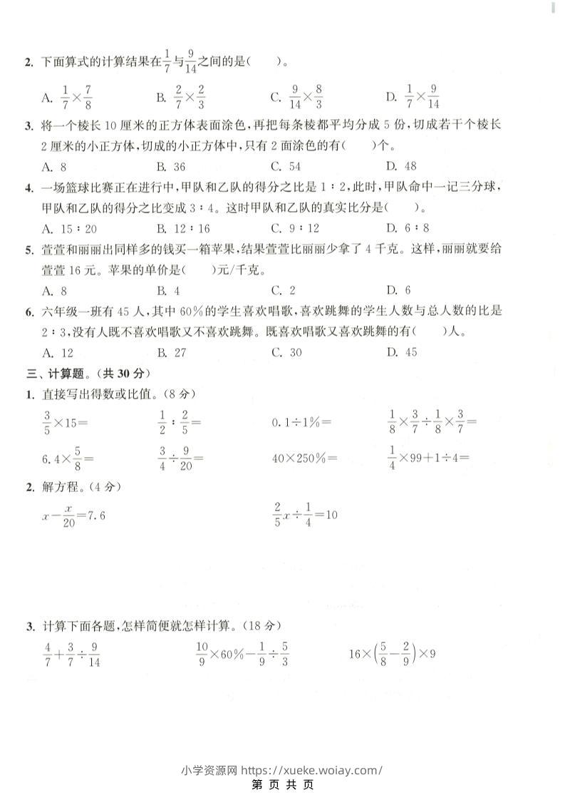 六年级上数学期末拔尖测试卷3《苏教版》admin9天前发布关注私信0478六年级上数学期末拔尖测试卷3《苏教版》此内容为付费资源,请付费后查看¥10黄金会员免费钻石会员免费立即购买您当前未登录!建议登陆后购买,可保存购买订单格式pdf页数5 页大小14.44 MB付费资源 ——预览已结束,还剩3页未读——开通会员后可免费下载高清完整文档 © 版权声明文章版权归作者所有,未经允许请勿转载。THE END小学数学 喜欢就支持一下吧点赞8 分享QQ空间微博QQ好友海报分享复制链接收藏