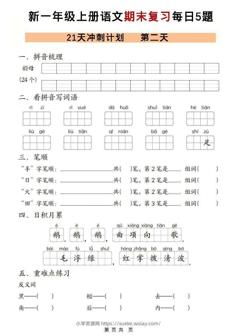 一年级上语文期末复习21天冲刺计划每日5道题admin6天前发布关注私信02710一年级上语文期末复习21天冲刺计划每日5道题此内容为付费资源,请付费后查看¥10黄金会员免费钻石会员免费立即购买您当前未登录!建议登陆后购买,可保存购买订单格式pdf页数21 页大小6.61 MB付费资源 ——预览已结束,还剩19页未读——开通会员后可免费下载高清完整文档 © 版权声明文章版权归作者所有,未经允许请勿转载。THE END小学语文 喜欢就支持一下吧点赞10 分享QQ空间微博QQ好友海报分享复制链接收藏