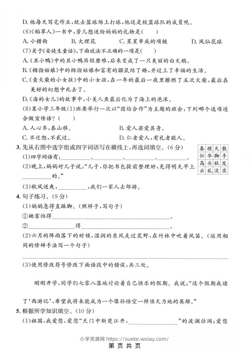 三年级上语文期末押题测试卷1admin6天前发布关注私信02711三年级上语文期末押题测试卷1此内容为付费资源,请付费后查看¥10黄金会员免费钻石会员免费立即购买您当前未登录!建议登陆后购买,可保存购买订单格式pdf页数5 页大小4.29 MB付费资源 ——预览已结束,还剩3页未读——开通会员后可免费下载高清完整文档 © 版权声明文章版权归作者所有,未经允许请勿转载。THE END小学语文 喜欢就支持一下吧点赞11 分享QQ空间微博QQ好友海报分享复制链接收藏
