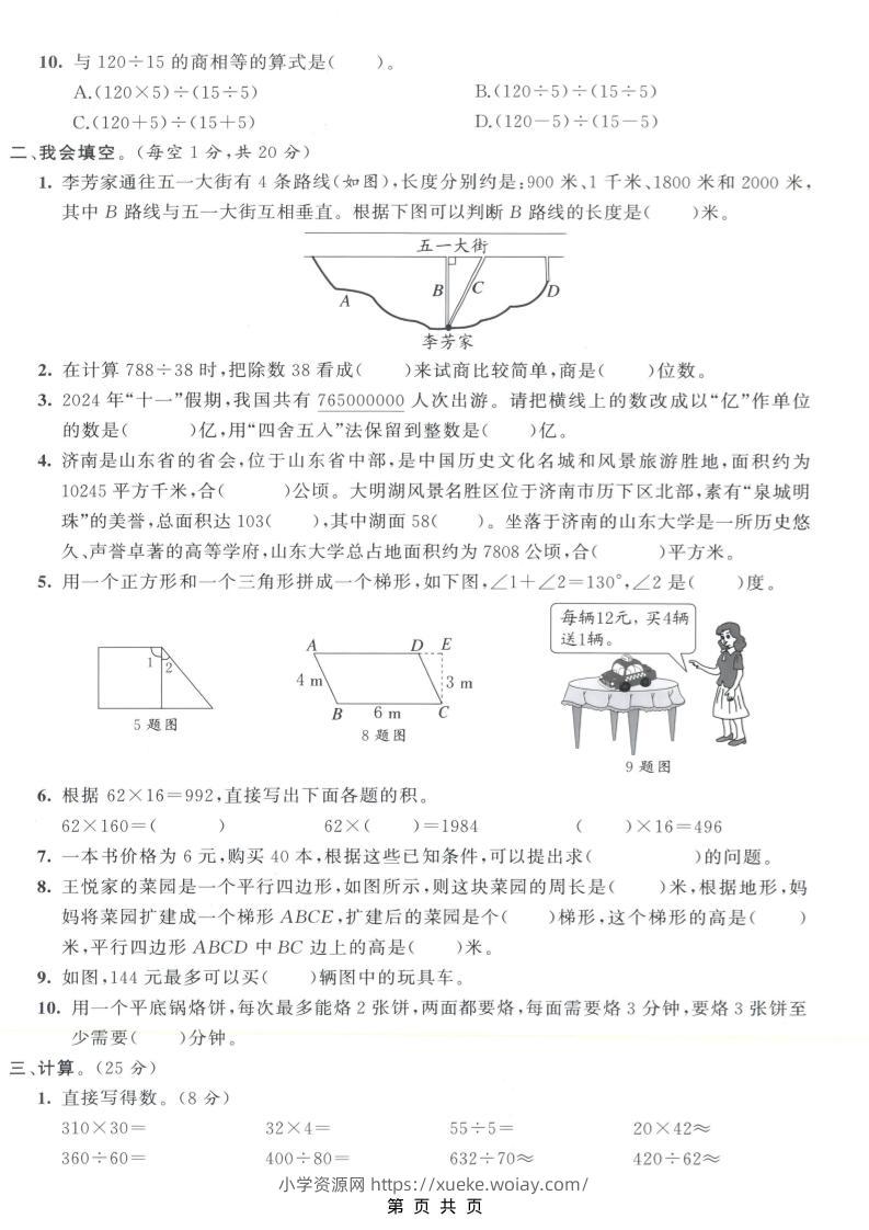 四年级上数学期末测试卷8《人教版》admin昨天发布关注私信02714四年级上数学期末测试卷8《人教版》此内容为付费资源,请付费后查看¥10黄金会员免费钻石会员免费立即购买您当前未登录!建议登陆后购买,可保存购买订单格式pdf页数5 页大小1.69 MB付费资源 ——预览已结束,还剩3页未读——开通会员后可免费下载高清完整文档 © 版权声明文章版权归作者所有,未经允许请勿转载。THE END小学数学 喜欢就支持一下吧点赞14 分享QQ空间微博QQ好友海报分享复制链接收藏
