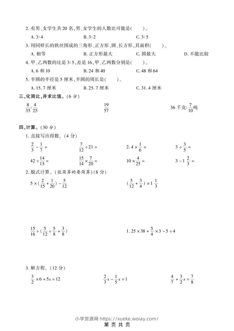 六年级上数学期末测试卷10《西师版》admin6天前发布关注私信02611六年级上数学期末测试卷10《西师版》此内容为付费资源,请付费后查看¥10黄金会员免费钻石会员免费立即购买您当前未登录!建议登陆后购买,可保存购买订单格式pdf页数5 页大小9.52 MB付费资源 ——预览已结束,还剩3页未读——开通会员后可免费下载高清完整文档 © 版权声明文章版权归作者所有,未经允许请勿转载。THE END小学数学 喜欢就支持一下吧点赞11 分享QQ空间微博QQ好友海报分享复制链接收藏