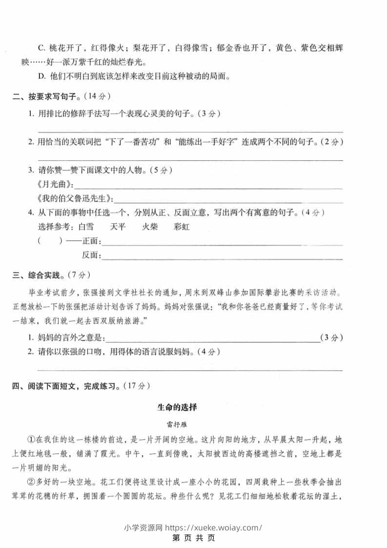 六年级上语文期末名校真题检测卷5admin5天前发布关注私信04511六年级上语文期末名校真题检测卷5此内容为付费资源,请付费后查看¥10黄金会员免费钻石会员免费立即购买您当前未登录!建议登陆后购买,可保存购买订单格式pdf页数5 页大小3.12 MB付费资源 ——预览已结束,还剩3页未读——开通会员后可免费下载高清完整文档 © 版权声明文章版权归作者所有,未经允许请勿转载。THE END小学语文 喜欢就支持一下吧点赞11 分享QQ空间微博QQ好友海报分享复制链接收藏