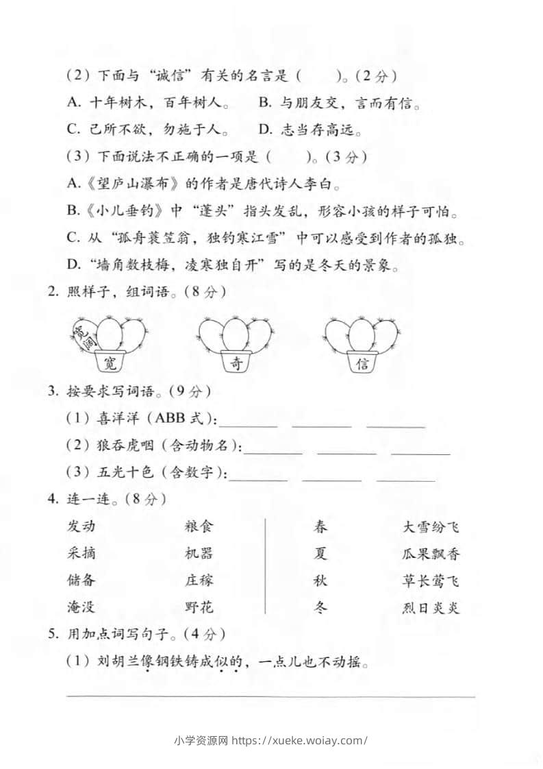 二年级上语文期末情景测试卷5admin3天前发布关注私信0377二年级上语文期末情景测试卷5此内容为付费资源,请付费后查看¥10黄金会员免费钻石会员免费立即购买您当前未登录!建议登陆后购买,可保存购买订单格式pdf页数5 页大小347.61 KB付费资源 ——预览已结束,还剩3页未读——开通会员后可免费下载高清完整文档 © 版权声明文章版权归作者所有,未经允许请勿转载。THE END小学语文 喜欢就支持一下吧点赞7 分享QQ空间微博QQ好友海报分享复制链接收藏