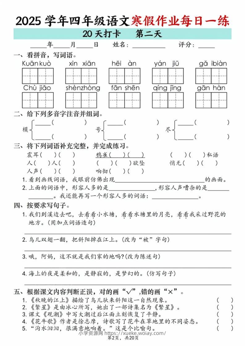 四年级上语文寒假作业每日一练20天admin3天前发布关注私信02912四年级上语文寒假作业每日一练20天此内容为付费资源,请付费后查看¥10黄金会员免费钻石会员免费立即购买您当前未登录!建议登陆后购买,可保存购买订单格式pdf页数20 页大小7.22 MB付费资源 ——预览已结束,还剩18页未读——开通会员后可免费下载高清完整文档 © 版权声明文章版权归作者所有,未经允许请勿转载。THE END小学语文 喜欢就支持一下吧点赞12 分享QQ空间微博QQ好友海报分享复制链接收藏