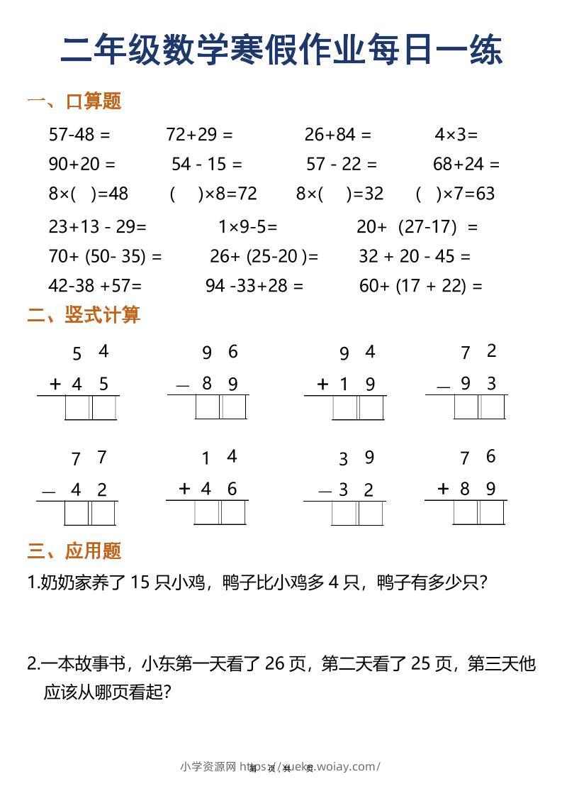 二年级数学下寒假作业每日一练30天(口算竖式应用题)(30页)admin12天前发布关注私信0396二年级数学下寒假作业每日一练30天(口算竖式应用题)(30页)此内容为付费资源,请付费后查看¥10黄金会员免费钻石会员免费立即购买您当前未登录!建议登陆后购买,可保存购买订单格式pdf页数30 页大小423.19 KB付费资源 ——预览已结束,还剩28页未读——开通会员后可免费下载高清完整文档 © 版权声明文章版权归作者所有,未经允许请勿转载。THE END小学数学 喜欢就支持一下吧点赞6 分享QQ空间微博QQ好友海报分享复制链接收藏