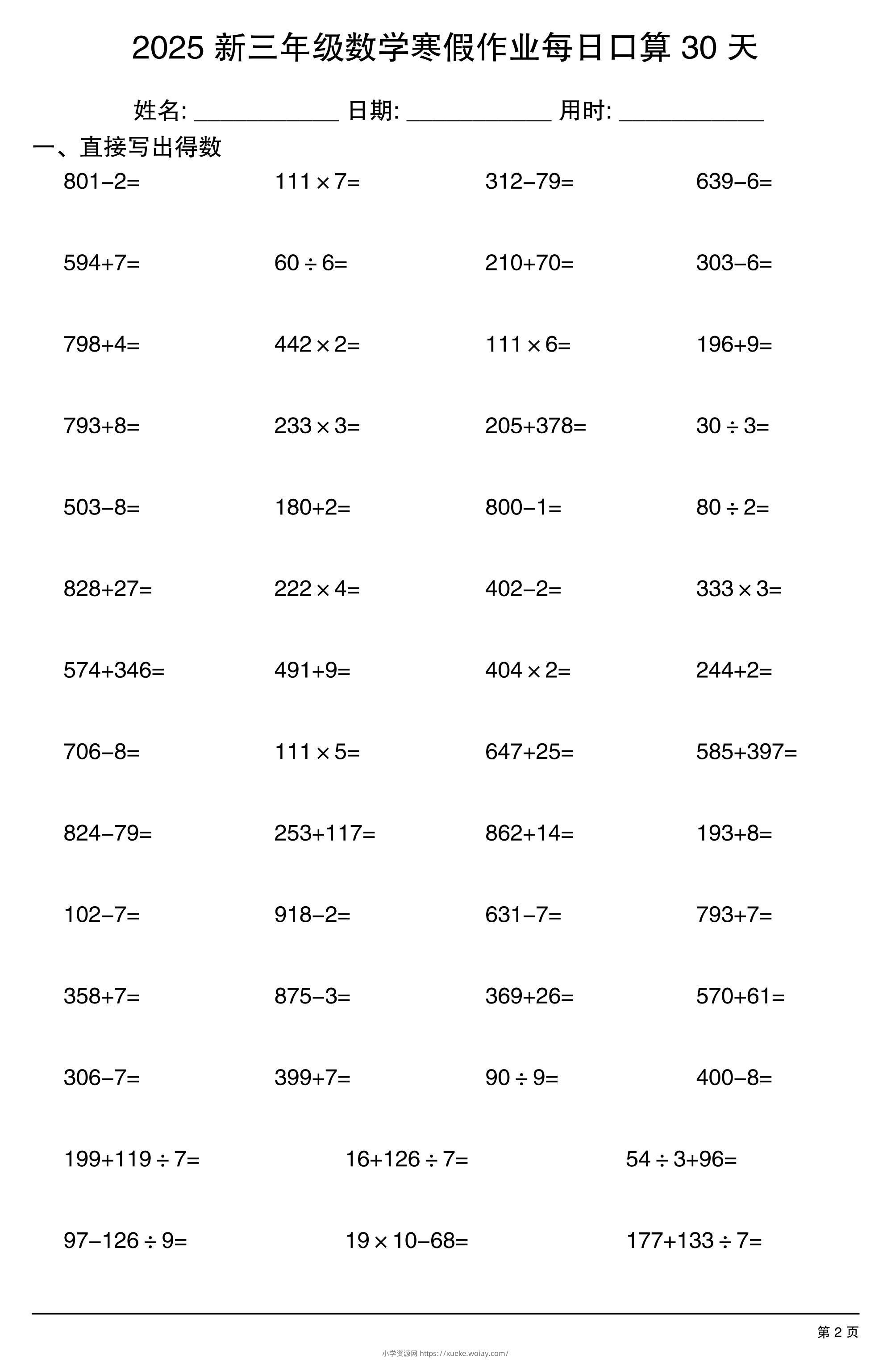 三下数学寒假作业每日口算30天admin11天前发布关注私信0259三下数学寒假作业每日口算30天此内容为付费资源,请付费后查看¥10黄金会员免费钻石会员免费立即购买您当前未登录!建议登陆后购买,可保存购买订单格式pdf页数30 页大小79.95 KB付费资源 ——预览已结束,还剩28页未读——开通会员后可免费下载高清完整文档 © 版权声明文章版权归作者所有,未经允许请勿转载。THE END小学数学 喜欢就支持一下吧点赞9 分享QQ空间微博QQ好友海报分享复制链接收藏