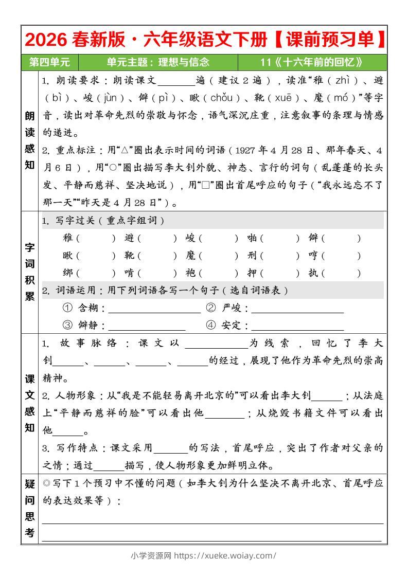 六年级下语文26春第四单元课前预习单admin前天发布关注私信0288六年级下语文26春第四单元课前预习单此内容为付费资源,请付费后查看¥10黄金会员免费钻石会员免费立即购买您当前未登录!建议登陆后购买,可保存购买订单格式pdf页数5 页大小547.19 KB付费资源 ——预览已结束,还剩3页未读——开通会员后可免费下载高清完整文档 © 版权声明文章版权归作者所有,未经允许请勿转载。THE END小学语文 喜欢就支持一下吧点赞8 分享QQ空间微博QQ好友海报分享复制链接收藏